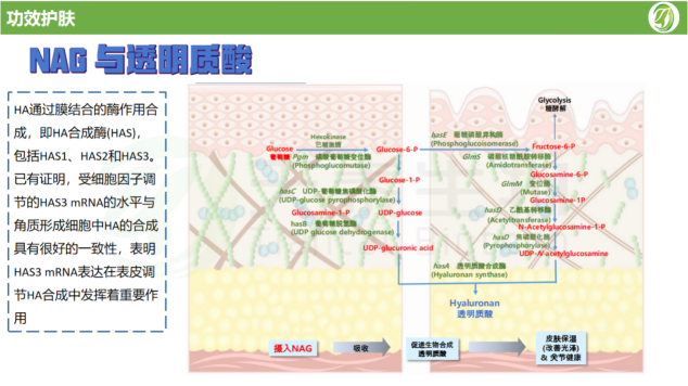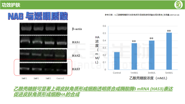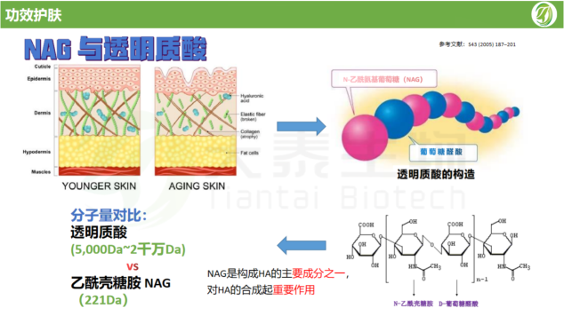 事實上,乙酰殼糖胺是透明質酸的分子前體,它在肌膚內轉化為透明質酸,從而發揮其保濕和滋潤的功效。